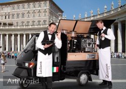 Een andere top-act waar Stan Lambregts op een prachtige manier zijn zangkunsten laat zien is Caffè Italiano, de mobiele espressobar. In een originele Italiaanse Piaggio, stelen Luciano (Stan) en zijn collega Giuseppe overal de show. Giuseppe is een volleerd Barista met een hartstochtelijke liefde voor de lekkerste koffie ter wereld: Caffè Italiano. Met zijn conservatorium geschoolde stem zingt Luciano de mooiste Italiaanse liederen, terwijl hij de heerlijke koffie van Giuseppe serveert. Espresso, Cappuccino, Caffè Lungo of Espresso Macchiato? Caffè Italiano is animatie met de lekkerste koffie, mediterrane charmes, veel humor en prachtige zang. Informeer bij ArtiWorld naar de mogelijkheden.